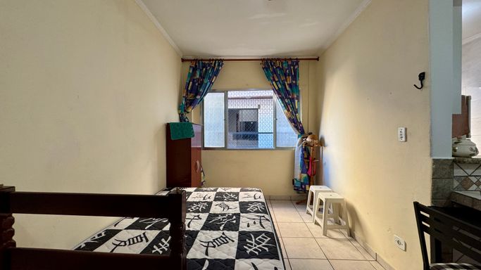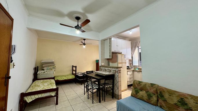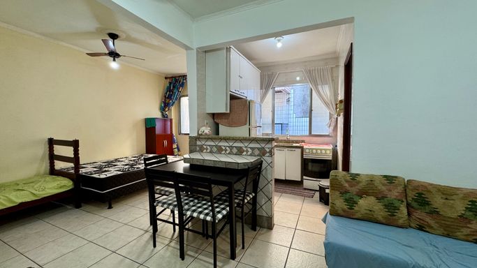 * AMBIENTES: Sala ;- cozinha ;-1 banheiro;- garagem coletiva;- 500m da Praia;- 3° andar de escada.