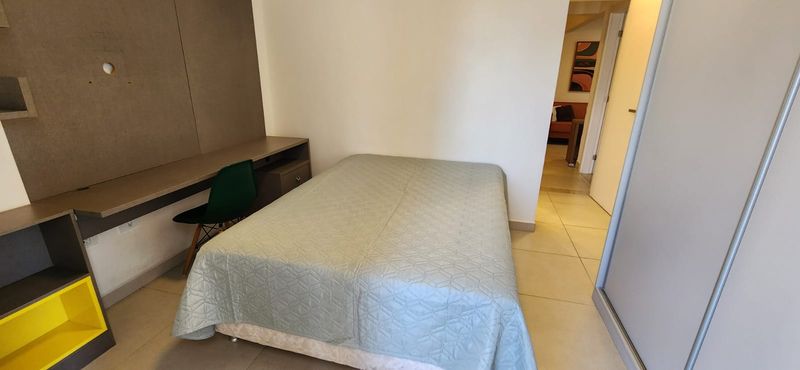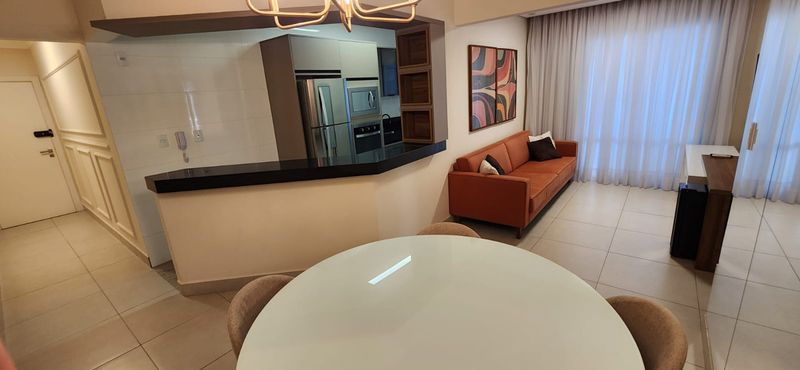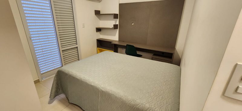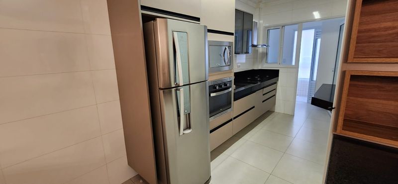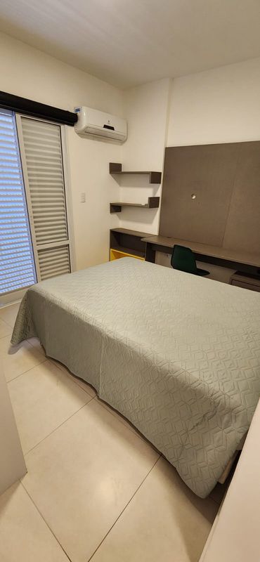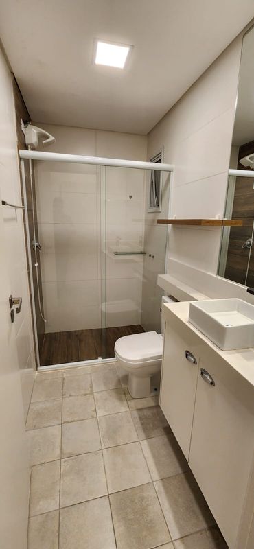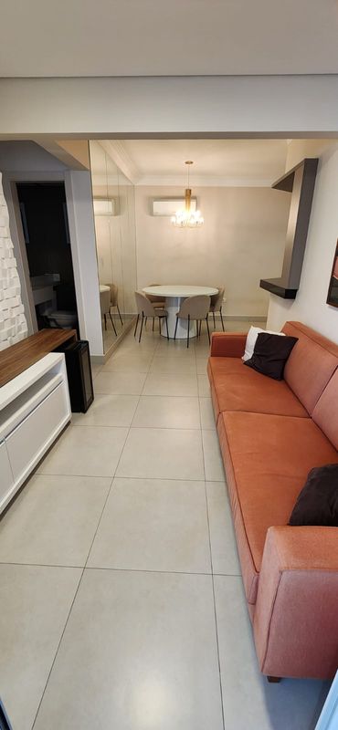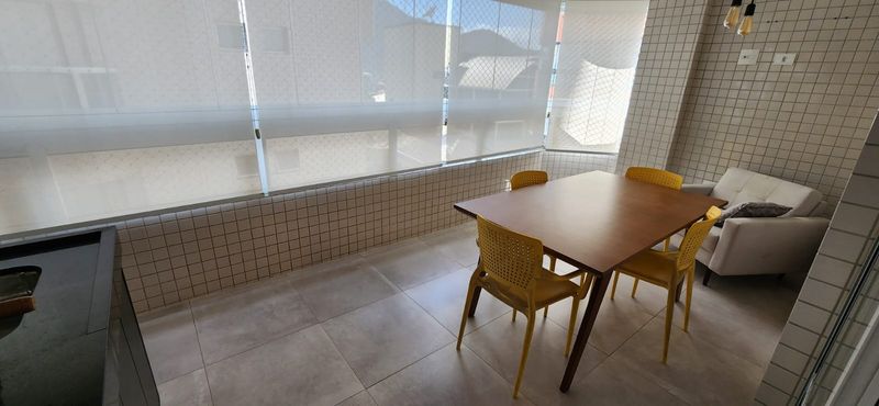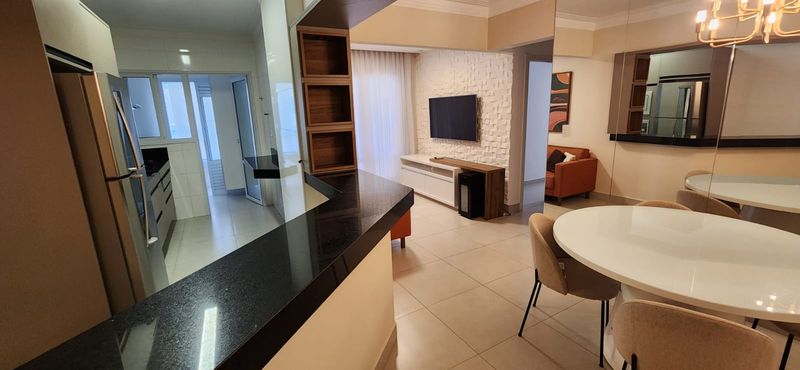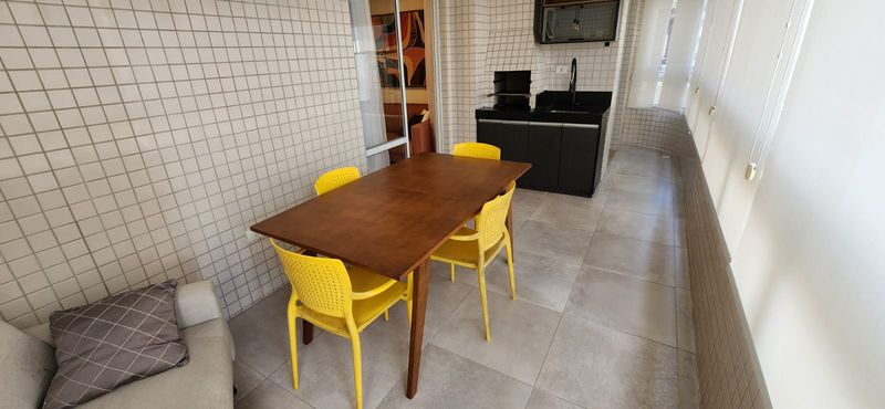 AMBIENTES:- 02 Dormitorios, sendo 02 suítes;- Sala;- Sacada com churrasqueira a carvão;- Cozinha;- Wc Social;- Mobiliado;- Área de serviço;- 02 Vagas de Garagem;- Área útil 96m².