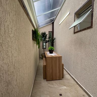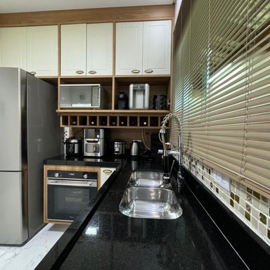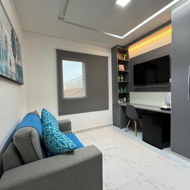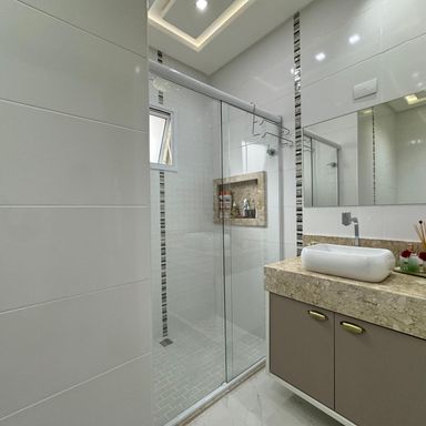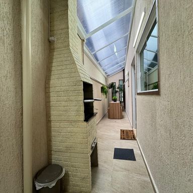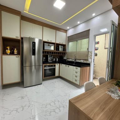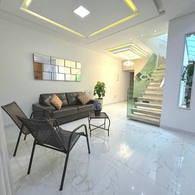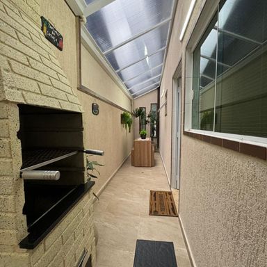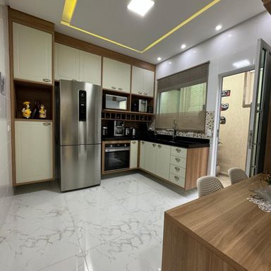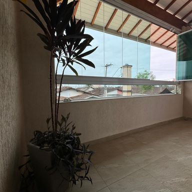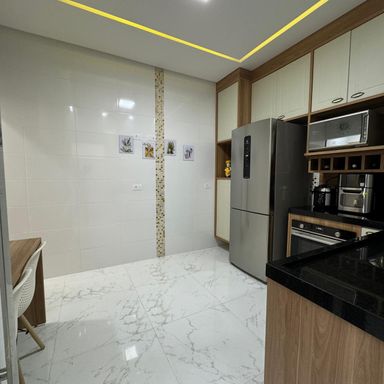 *AMBIENTES:- -Magnifico Sobrado Novo, contendo 120 m² de área construída, sendo distribuído em 02 dormitórios, ambos sendo suítes, suítes com box blindex, armários planejados em todos os dormitórios, 01 dos quartos com sacada e área de repouso de frente para rua envidraçada, lindíssimo acabamentos, sala ampla e decorada, lavabo, cozinha planejada e equipada, 2º cozinha gourmet com cooktop, espaço gourmet, lavanderia, 01 lavabo externo, garagem para 02 carros, todos os cômodos com sancas e rebaixamento em gesso lindíssimos, além de interfone com câmera, o imóvel também possui monitoramento com câmaras xpto33. Acabamentos em porcelanato, mármore travertino na escada flutuante com corrimão e acabamento lateral em vidros temperados verdes, verdadeiramente um luxo e requinte. Ao verificarem as fotos verão o requinte de acabamentos neste sobrado. Agende a sua visita agora mesmo!