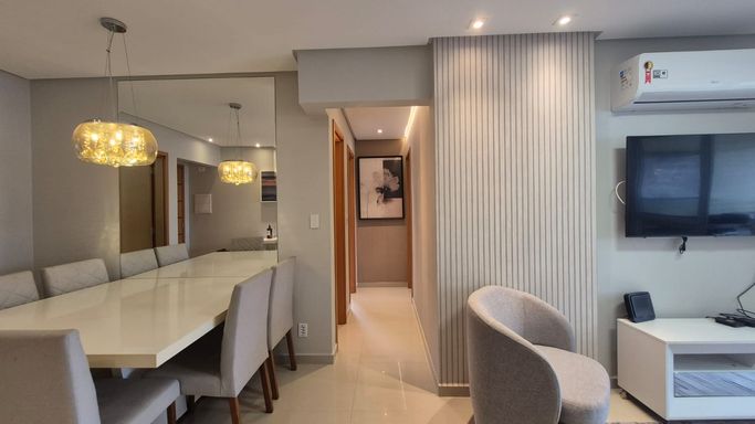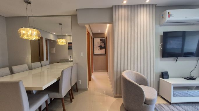 AMBIENTES:- 02 Dormitórios, Com Suítes;- Sala;- Varanda Gourmet;- Sacada;- Cozinha;- Área de serviço;- Lavabo; - 02 vagas de garagem Privativas;- 82m² Área útil.
