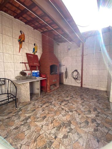 AMBIENTES:- 02 Dormitorios;- Sala;- Cozinha;- Wc Social;- Área de serviço;- Churrasqueira com pia;- Edícula com um Wc Social;- 03 Vagas de Garagem;- Área útil 72m².